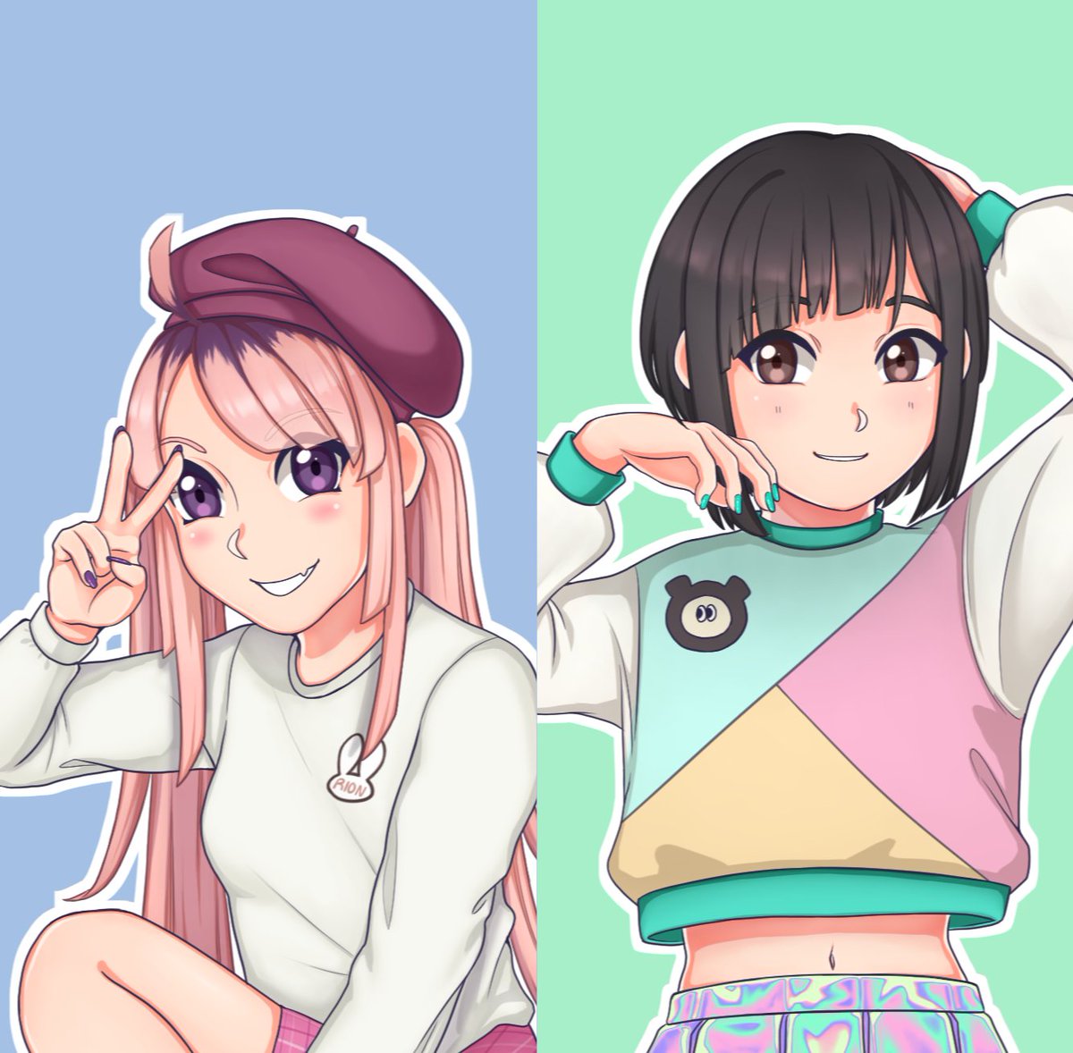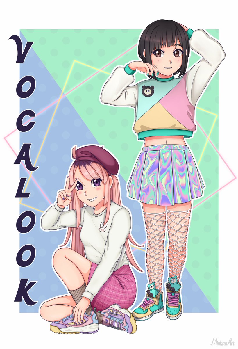 Yumemi Nemu and Tone Rion wearing some cute outfits for this year's Vocalook ❤️💚 #vocalook #vocalook2020