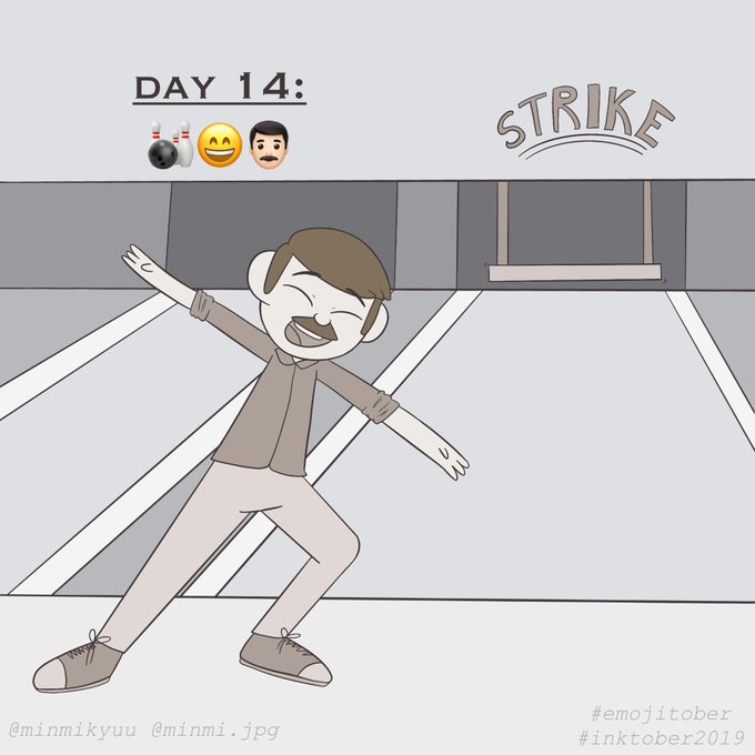 #Inktober Day 14: 🎳😄👨🏻 I also managed to finish yesterday's inktober!! This one is pretty simple but I find it kinda cute 😊 I couldnt manage to draw bowling better tho ;;;; #emojitober #Inktober2019