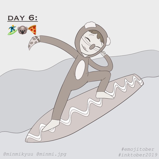 #Inktober Day 6: 🏄♂️🐨🍕 This is yesterday's inktober!! I was so busy I couldnt do it so I did it today early in the morning. I am in love with how cute it is!! I am also super excited bc it took me less time than usual so I am indeed making progress 🧡 #emojitober #Inktober2019