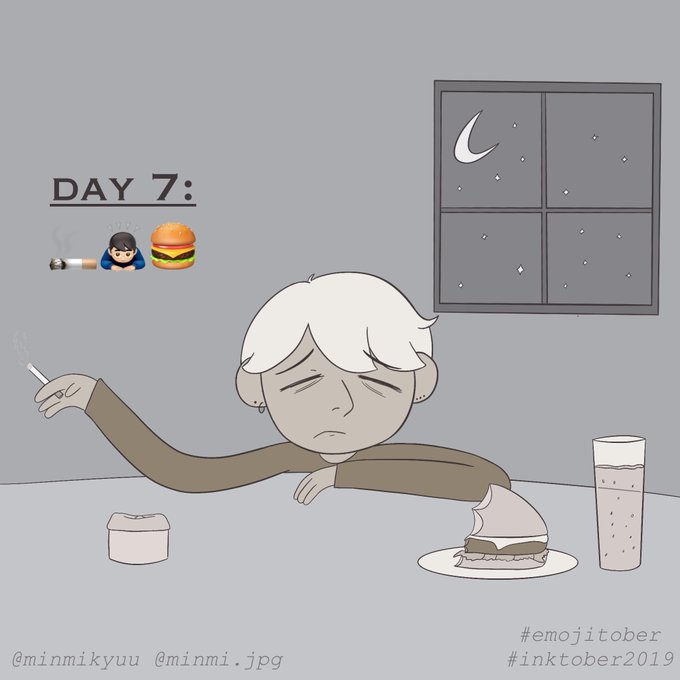 #Inktober Day 7: 🚬🙇🏻♂️🍔 Today's inktober is finally here!! I did my best to implement the three emojis in the drawing and I hope you like it!! 😊 #emojitober #Inktober2019