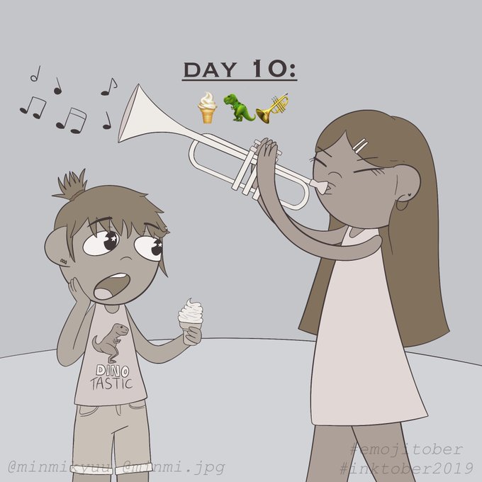 #Inktober Day 10: 🍦🦖🎺 I was planning to draw a t-rex eating the ice-cream but I'm so sorry I couldn't handle that, so here you have two cuties 😊 #emojitober #Inktober2019
