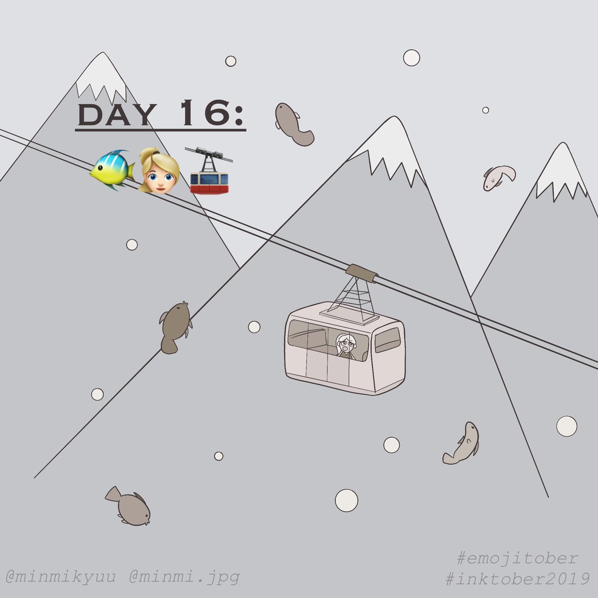 #Inktober Day 16: 🐠👱🏻♀️🚠 This idea was cuter in my head but I don't have enough time to make it look better! It's still cute tho 😊 I'm doing my best to keep up with inktober and my class assignments ;;; #emojitober #Inktober2019