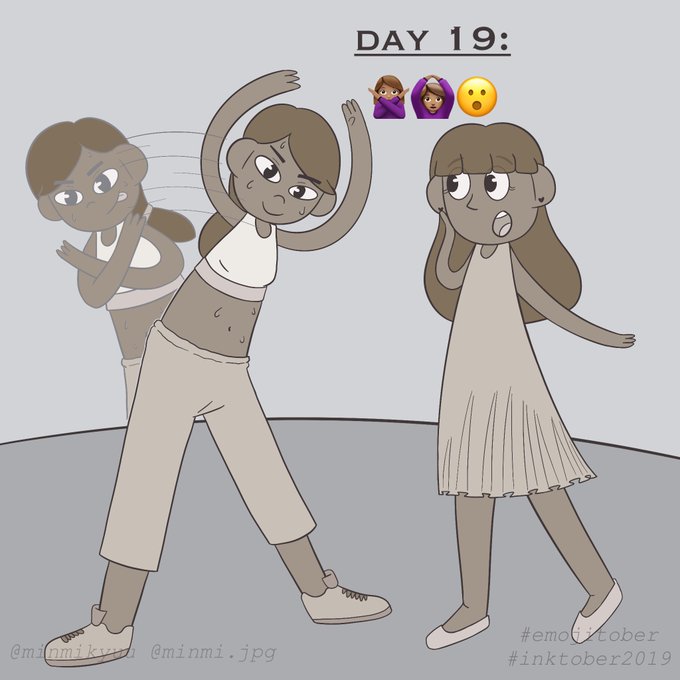 #Inktober Day 19: 🙅🏽♀️🙆🏽♀️😮 A girl working out while her girlfriend is amazed by her stamina. I am also working hard and I already managed to do two inktober drawings today, I hope I can do the remaining drawings this afternoon! #emojitober #Inktober2019