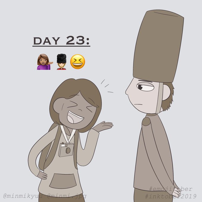 #Inktober Day 23: 💁🏽♀️💂🏻♂️😆 A chatty tourist trying to have a conversation with a guard. #emojitober #Inktober2019