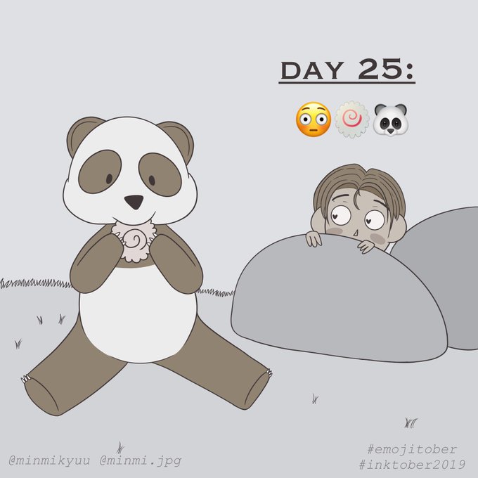 #Inktober Day 25: 😳🍥🐼 Admiring a cute panda 🥺 I know pandas wouldn't eat that food so don't mind that too much please ;;; #emojitober #Inktober2019