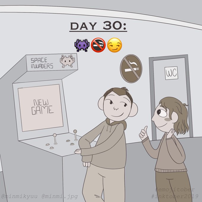 #Inktober Day 30: 👾🚭😏 The cute boyfriends from my inktober drawing of day 13 are having a lovely date in the arcade 🥺🧡 #emojitober #Inktober2019