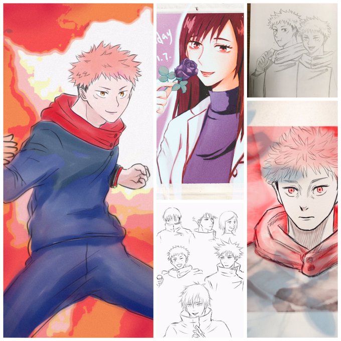 #今月描いた絵を晒そう 不在がちで申し訳ないのですが😅 繋がっていてくれててありがとうございます 遅刻ですが11月に描いた絵です ゆじとしょーこさん少し直した クリアファイル見てかいたのとか じゃんぷ表紙アレンジゆじ