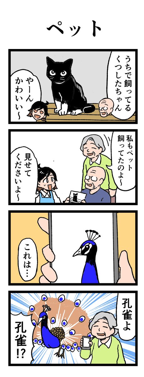 🐶みんなでペットの鑑賞会😀 「私もペット飼ってるんです」 みんなの飼っているペットの写真を見ていると…⁉ 原作:介護福祉士・こはるさん @koha_kaigo マンガ:オカトマトさん @tomatokeikakuan #マンガが読めるハッシュタグ #みんなの介護 job.minnanokaigo.com/news/4koma-man…