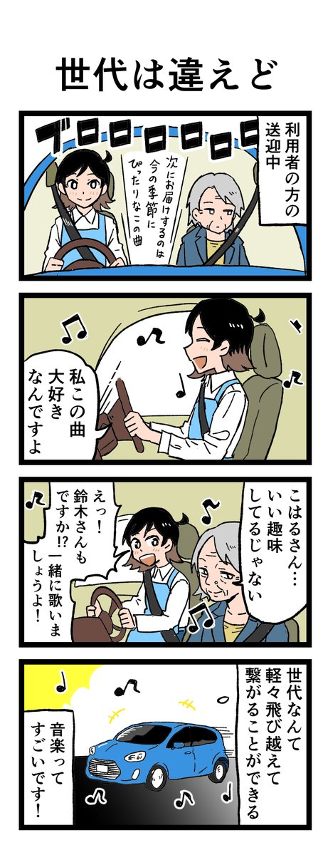 😳ジェネレーションギャップも何のその 「世代は違えど」 ラジオから好きな曲が。懐かしく聴いていると…⁉ 原作:介護福祉士・こはるさん @koha_kaigo マンガ:オカトマトさん @tomatokeikakuan #マンガが読めるハッシュタグ #みんなの介護 job.minnanokaigo.com/news/4koma-man…