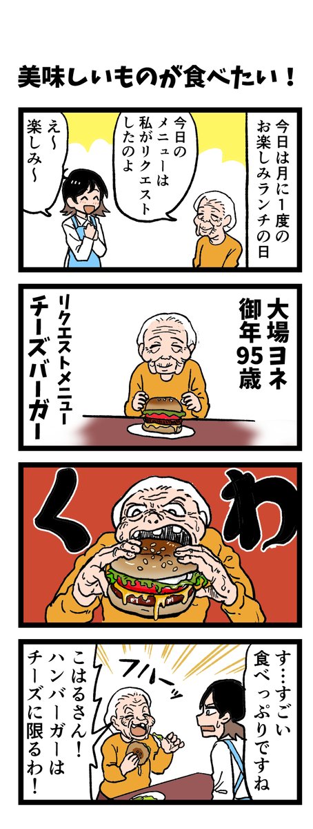 😳今日は月に一度のお楽しみランチ♪ 「美味しいものが食べたい!」 いくつになっても食べたくなっちゃうアレ…⁉ 原作:介護福祉士・こはるさん @koha_kaigo マンガ:オカトマトさん @tomatokeikakuan #マンガが読めるハッシュタグ #みんなの介護 job.minnanokaigo.com/news/4koma-man…