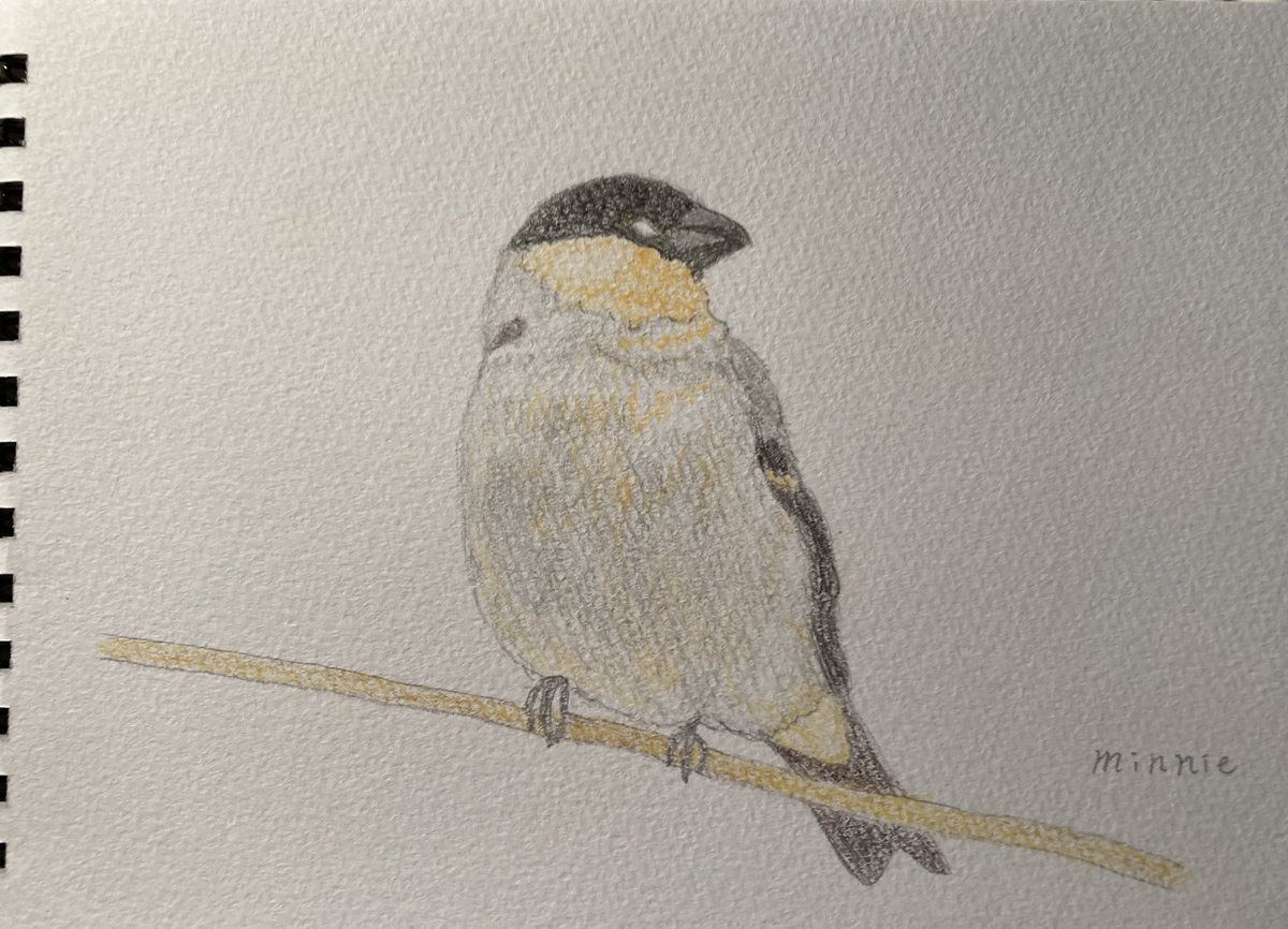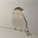 0 18 #お絵描き練習中 「絵を描くための鳥の写真集」 から #アカウソ 名前の由来は鳴き声が口笛のようだからなのだと… 「ウソ」とは古語で口笛のことだったのだそうです #アナログ絵 #色鉛筆 #マルマンスケ部 22/10/02 10:05