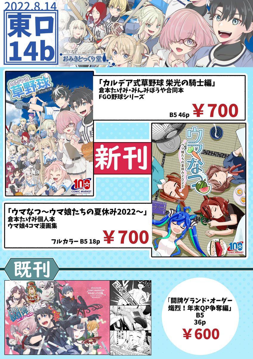 コミケ受かってました〜😚 今回もFGO野球漫画描きます! よろしくお願いします🙇♀️ あなたのサークル「おみきどっくり堂」は、コミックマーケット101で「金曜日東地区 "キ " 19b」に配置されました!コミケWebカタログにてスペース配置場所公開中です! webcatalog.circle.ms/Circle/Map/168… #C101WebCatalog