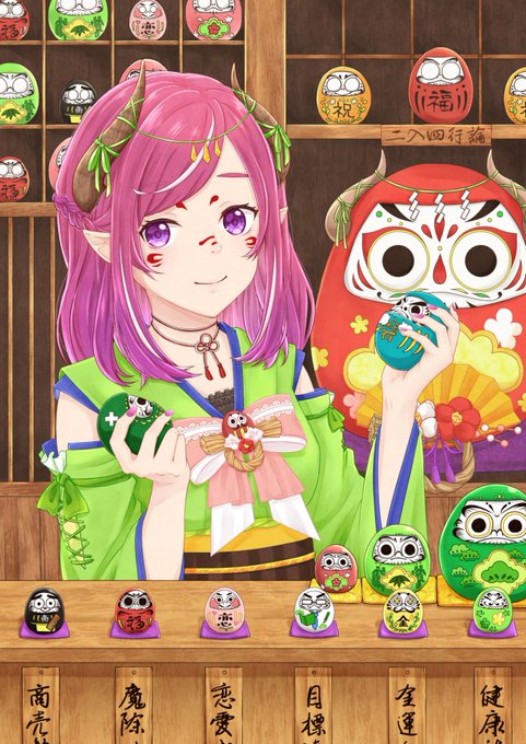 pixiv企画のツノモノガタリに応募しました! (全体は間に合わなさそうなので顔アップのみなので、完成は後日載せます🙇♀️) 不思議なだるま屋さん #pixiv pixiv.net/artworks/99314…
