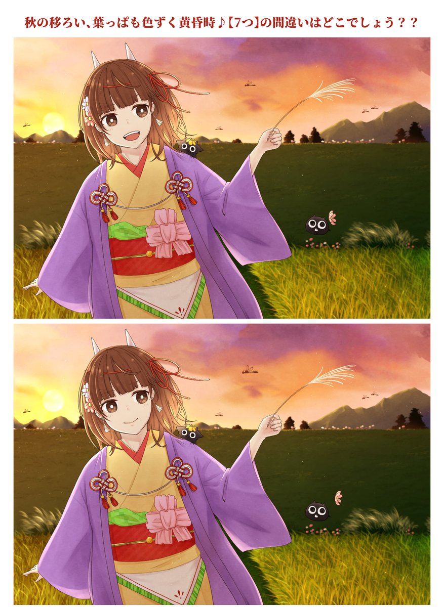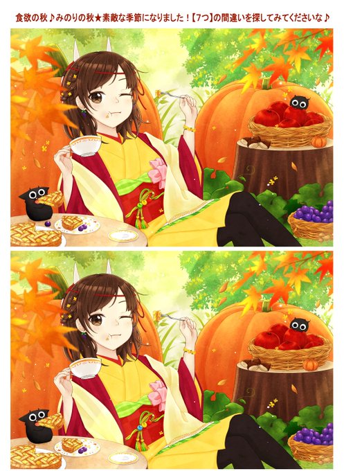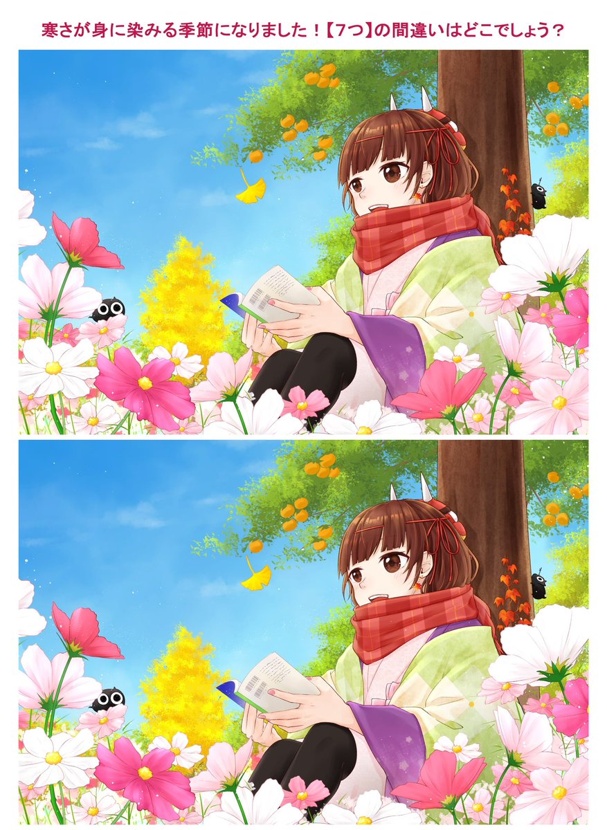 11月🍂 寒さが身に染みる季節になりました❄️ 風邪をひかないようにあったかくしてくださいね🍵 今月も【7つ】間違いがあるので探してみてください🌱✨ #間違い探し #イラスト #誰かの推し作家になりたい