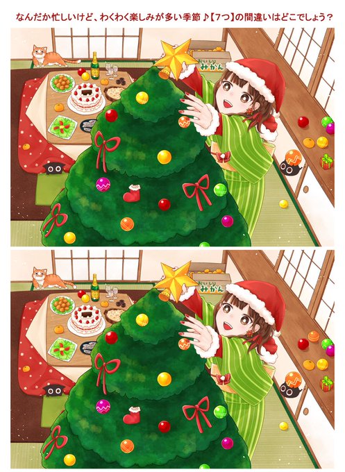 12月🎄 忙しくも、わくわく楽しい季節になりました🌟 あれやこれや準備が大変ですが、楽しみましょーっ!! 今月も【7つ】間違いがあるので探してみてください✨ #間違い探し #イラスト #誰かの推し作家になりたい
