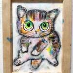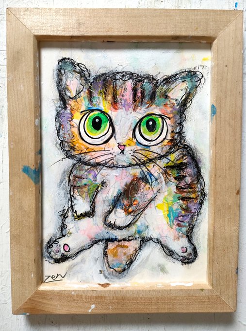 #イラスト好きさんとつながりたい #絵描きさんと繋がりたい #イラスト #絵 偶然いい絵が出来た。それをどう活かす、生かすかだ! 第三の矢は、シルクスクリーン応用絵画だ! A4サイズにカラー彩色をします。 title「心を決めたニャンコ」