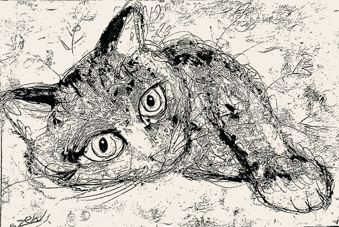 #イラスト好きさんとつながりたい #絵描きさんと繋がりたい #イラスト #絵 #猫 #ボールペンドローイングからシルクスクリーン応用絵画へ ボールペンドローイングから繋げる シルクスクリーン応用絵画へ