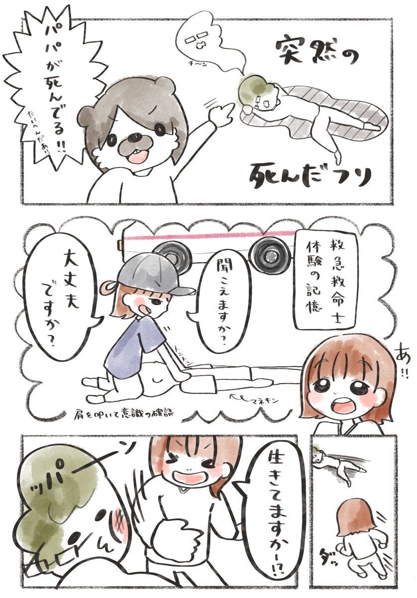 1 2 某有名職業体験テーマパークにて 救急救命士🚑の経験を生かした ワイルドな対応方法を身につけました🙄 思った以上に本気です😉笑 #育児絵日記 #育児漫画 #キッザニア 23/04/20 20:00