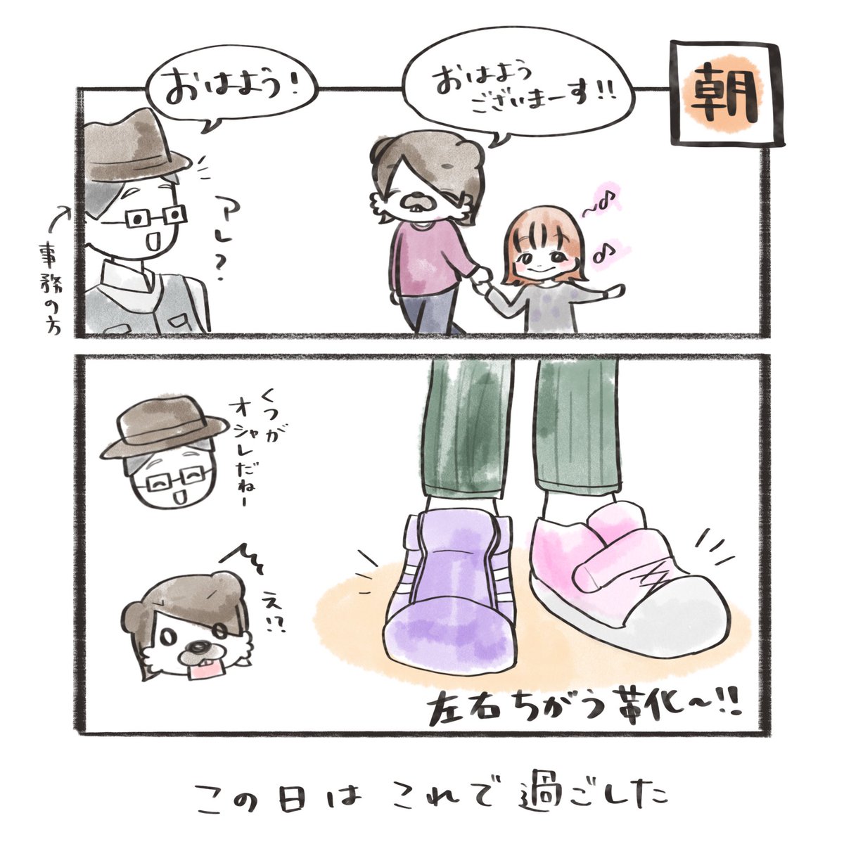 1年前くらいの話なんですけど… 保育園前で気付いた時の 衝撃が忘れられない………😧💦 本人も間違えたーっ🤣って言ってた… #育児漫画 #育児絵日記