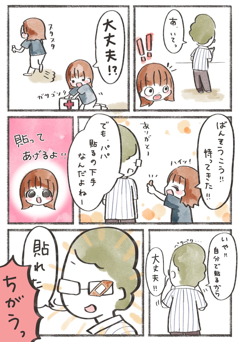 絆創膏貼るの下手………とは…? #AB型の面白い旦那 #育児絵日記 #育児漫画