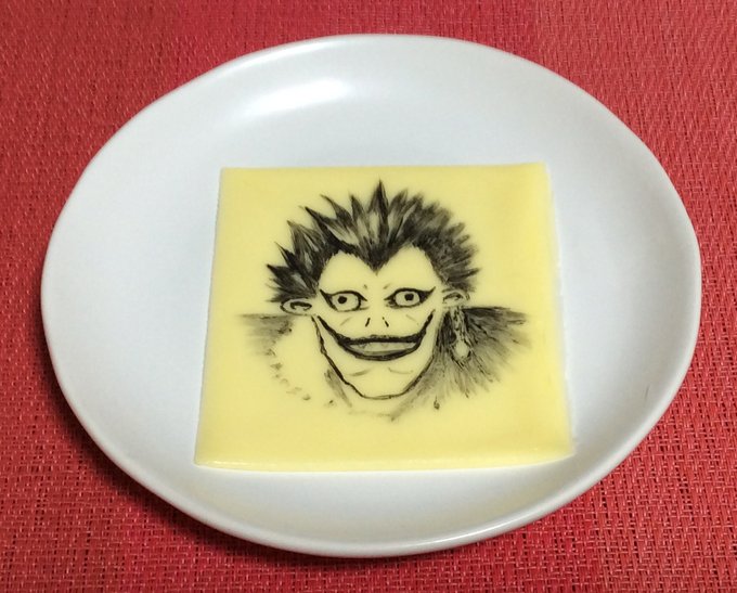 本日も新しい試みです。 チーズアートNo.1 死神リュークをチーズに描いてみました。 ・問題点 意気揚々と描いたはいいものの、チーズとお皿がくっついてしまい、はがすのに苦労しました😩 #DEATHNOTE
