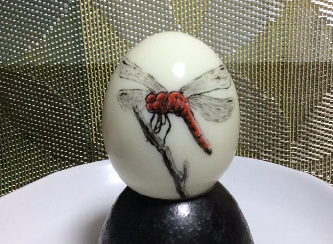 古伊万里にあるような蛸唐草模様、そして中心には牡丹を描いてみました。 こういった永遠に続く模様ってコツコツ時間をかけて描かないといけないので苦労しましたw 最終、卵の殻にニスを何度か塗ったら陶器のような光沢が現れました😃 #エッグシェルアート #たまごアート #伊万里焼
