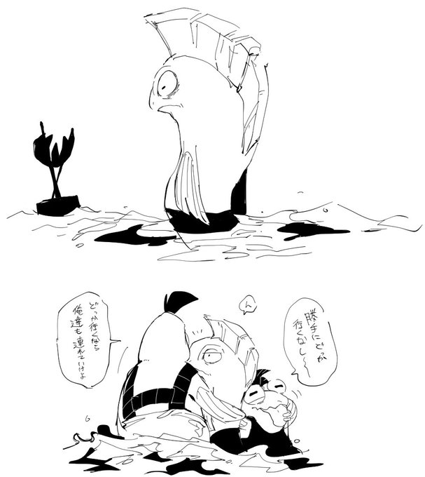 おめすりらくがき チェロおじさん海に攫われそうだしその時は引っ張るんじゃなくて2人ともついていきそう