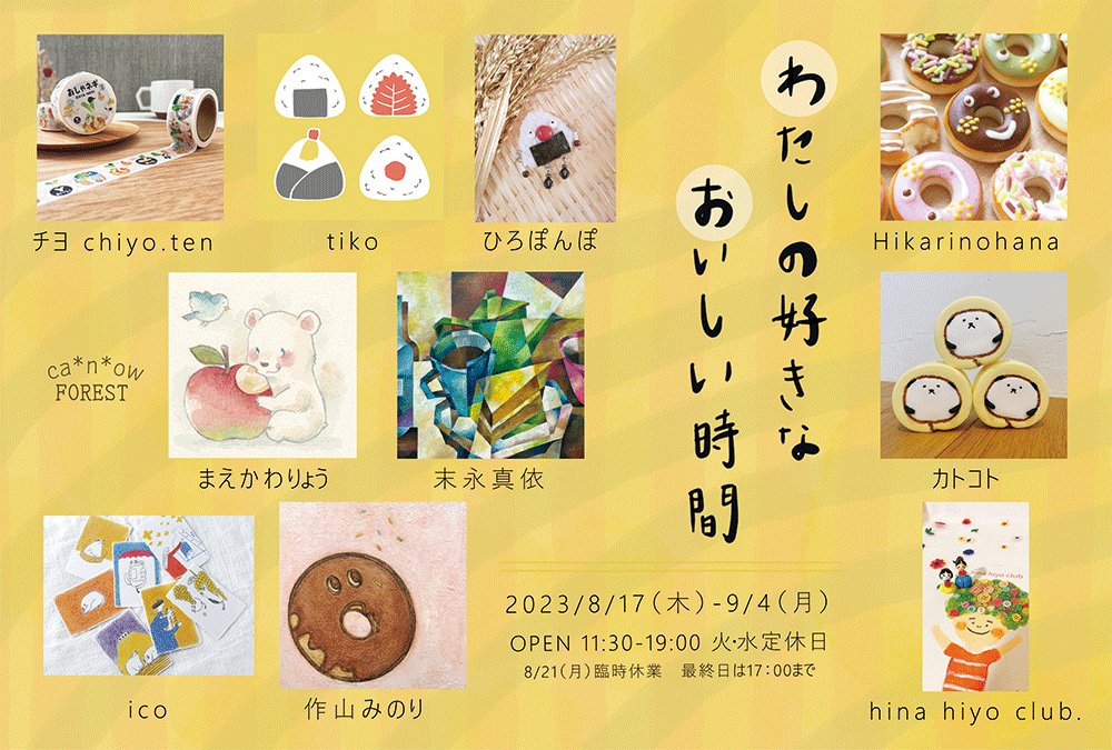 🍩展示のお知らせ🍩 🍮わたしの好きなおいしい時間🍮 会期:8月17日~9月4日 会場:ca*n*owFOREST様 🍮とか描きました!よろしくお願いいたします😆‼ 【ca*n*owFOREST】 〒166-0001 東京都杉並区阿佐ヶ谷北1-14-4 1F OPEN 11:30-19:00(火・水定休) HP : ca-n-ow.com