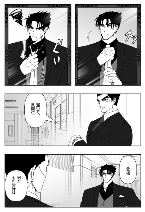 仁一😋 仁が(記念イラストを除いて)ネクタイを締めた服装がないのは(周りに大人の男がいなかったから)方法が分からないからだと思うと楽しい~ 仁の反応が初々しい理由は高校生だからです