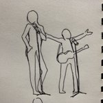 ナメたポーズできれいな声をだすアーティと手持ち無沙汰になって変な踊りをするポールを表現したらくがき