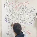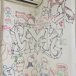 壁紙の貼り変え前に壁にマジックで落書きをしました!! とても楽しかったです!!!