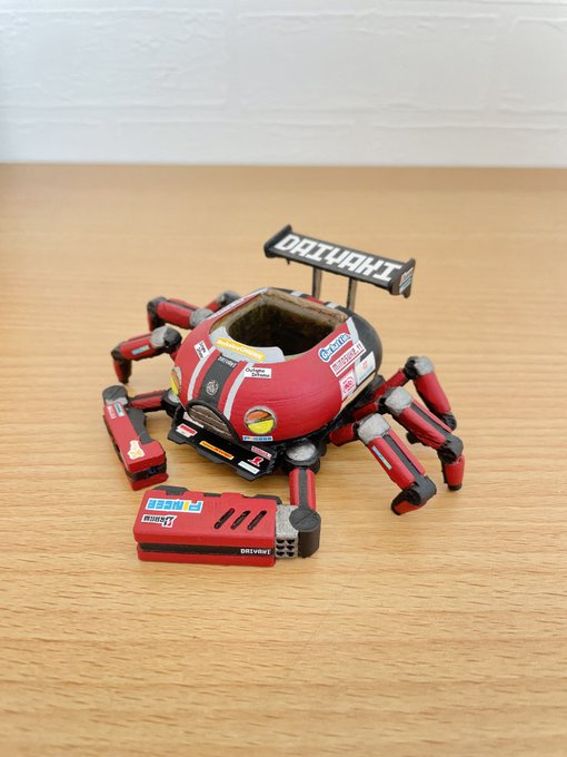 SuperGTカニできた!! 落書きを参考に3Dモデリングして3Dプリンターで印刷して塗装→デカール作成&貼り💮 1からの作成は大変だけど楽しかった✨ もっとクオリティが上げられるように頑張ろうと思いました!! ちなみにメイトが乗れるよ🙆🏻