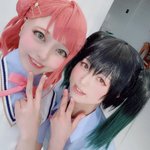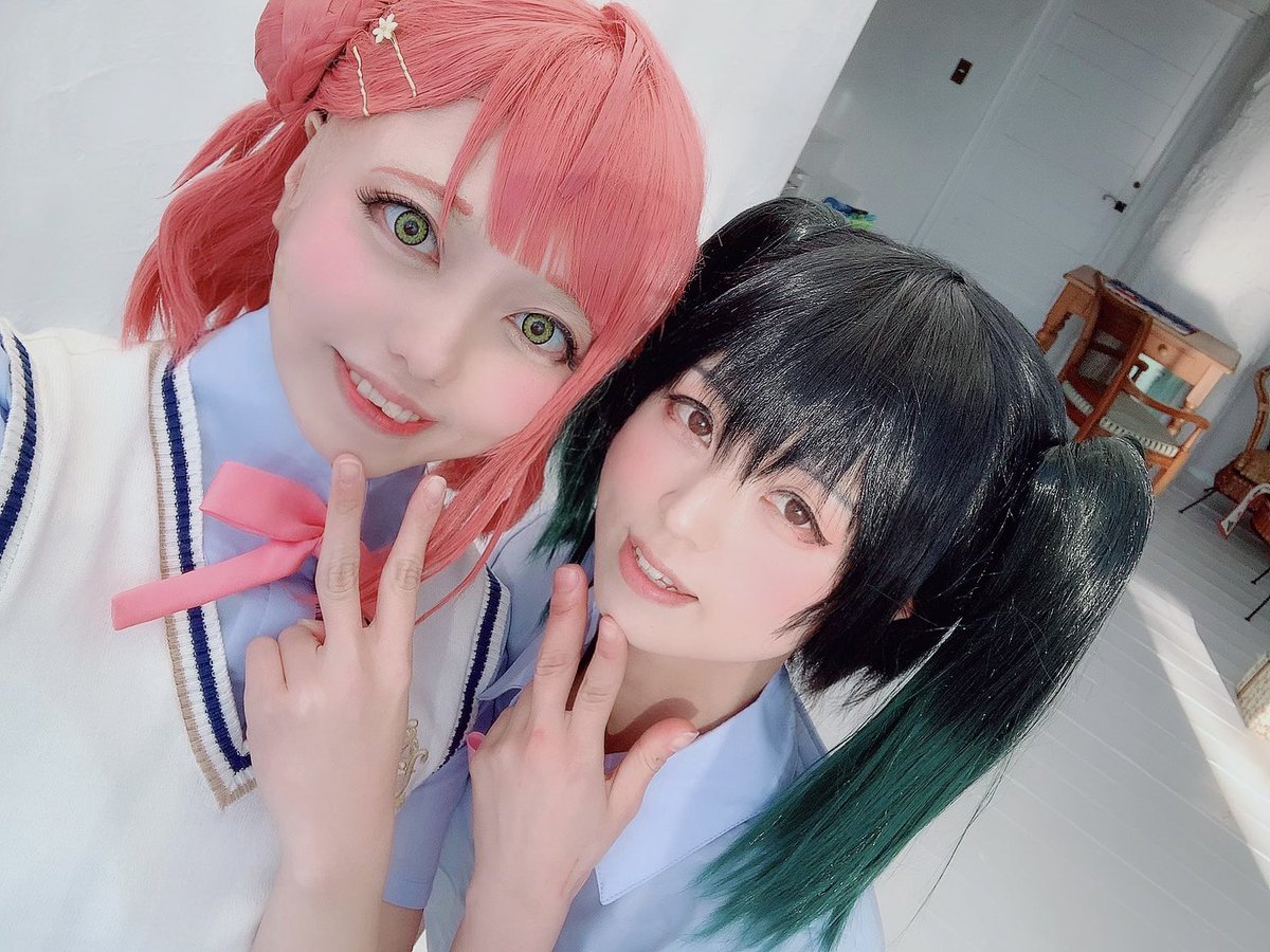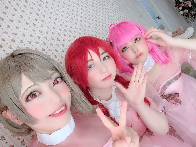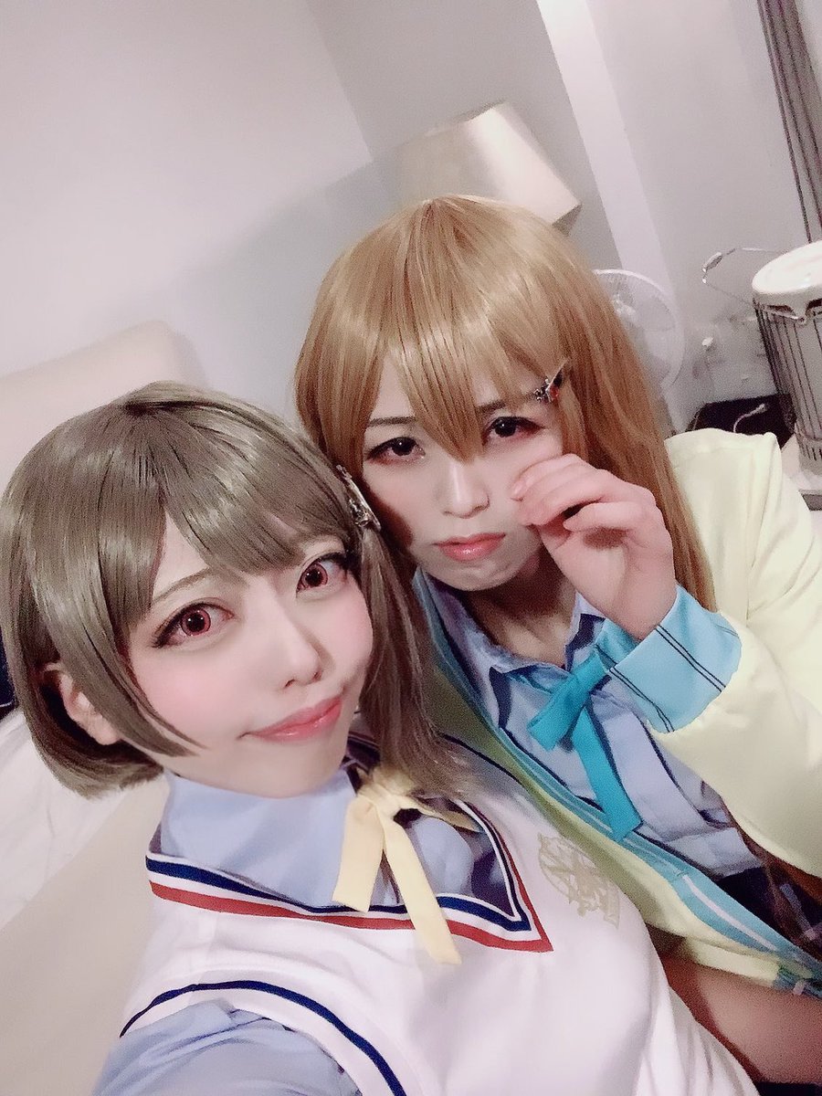 帰宅したのでおそくほー! 璃奈ちゃんとエマちゃんと3人で併せをしてきました👑📶🍞 久々のコスプレ&初めての虹ちゃんの併せ楽しかった🥰🌈 次は彼方ちゃん入れたQU4RTZで併せがしたいな🐑💕 #彼方ちゃんずっと待ってるよ0817併せ