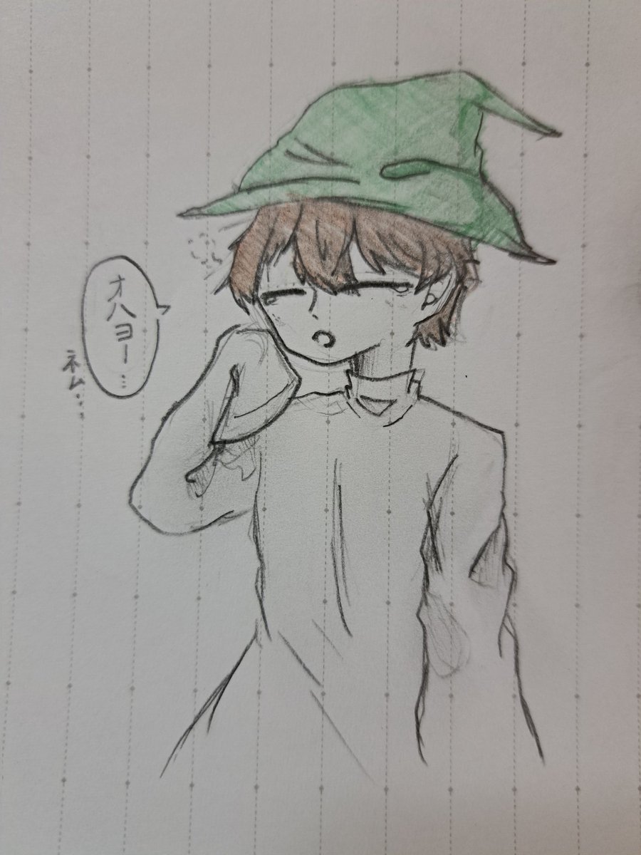#緑色さんご自由にどうぞ 朝こんな感じで居たらいいなぁと思ったらくがきです