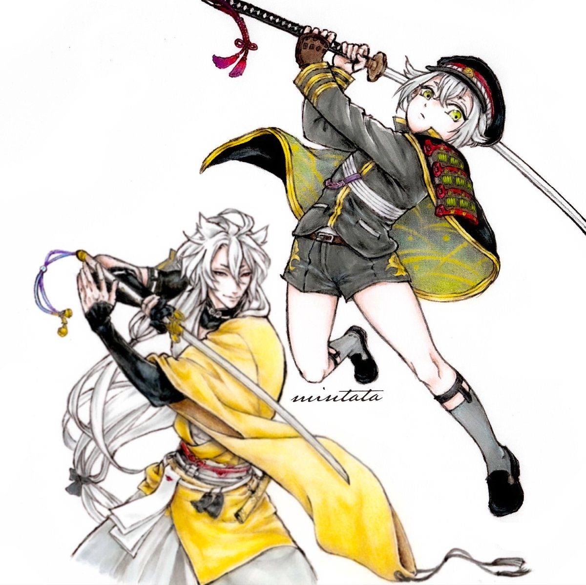 23 64 画像表示が横長に変わってちょっと描きにくくなったので真逆の縦長で描いてやる!と駄々をこねて描いてみた。 私の我儘に付き合わされた小狐丸さんと三日月さん。 23/01/19 22:20