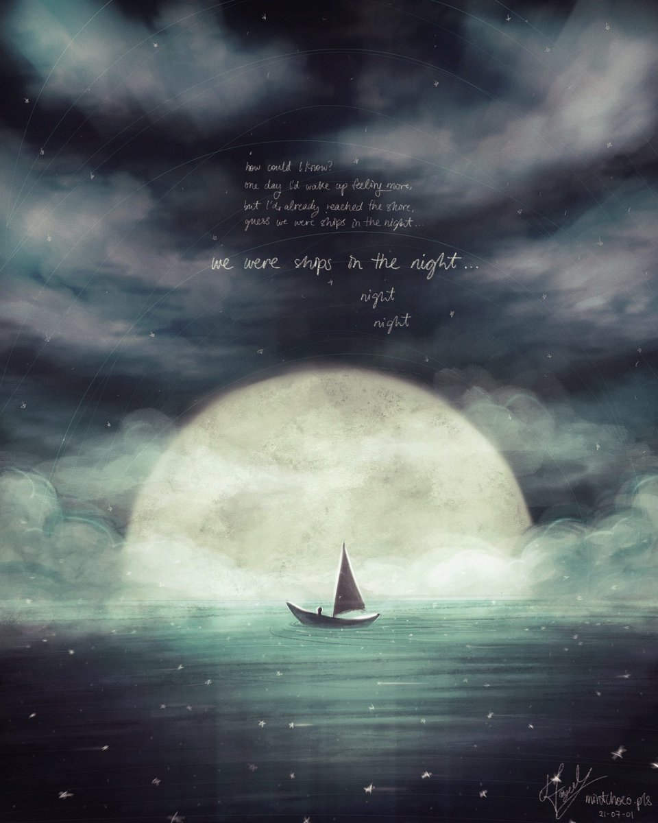 94 215 we were ships in the night.. 🌕🌌 - a sweet night inspired piece; i’m really happy with how it turned out! #bts #btsfanart #sweetnight #taehyung #taehyungfanart #btsart 21/07/03 05:00