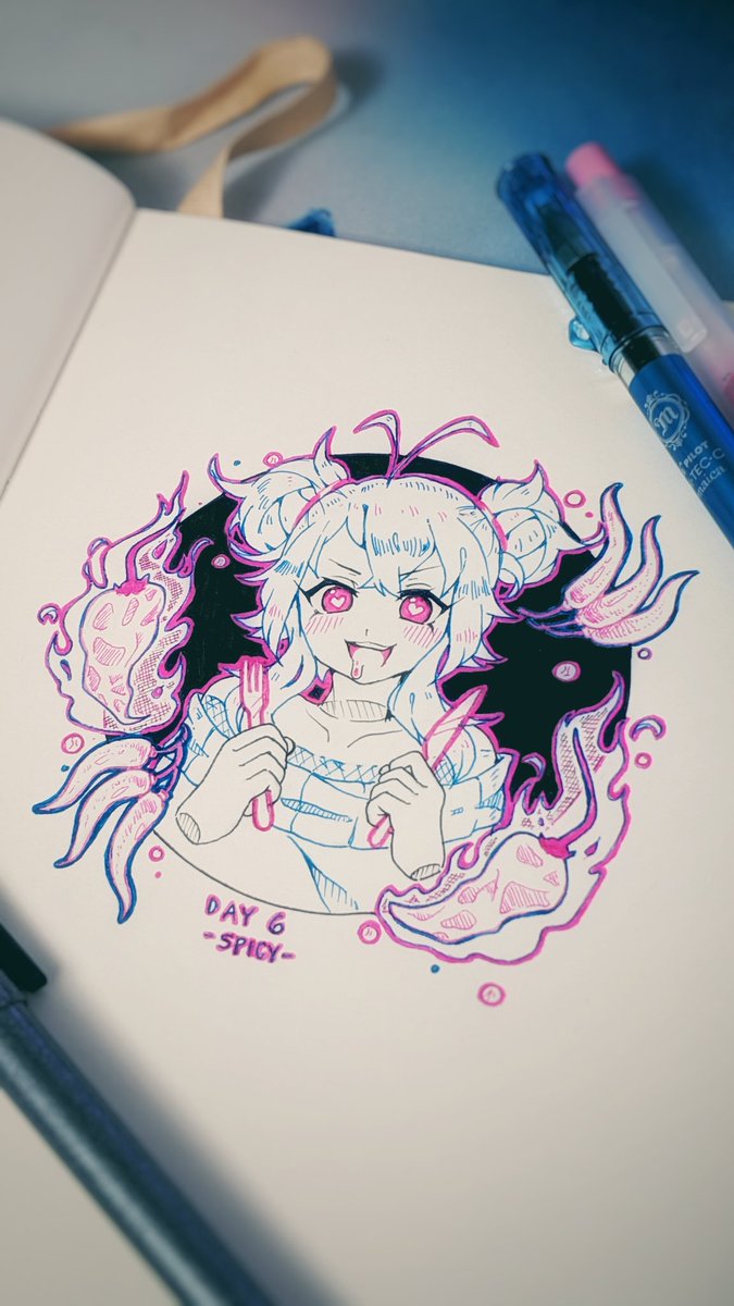 Day 6 -Spicy- 🌶️Haunted Ghost Pepper🌶️: So spicy that you'll feel the burn even in the afterlife. Very popular with ghoul gals and spooky folk. Tastes slightly incorporeal. - #inktoberday6 #inktober #Inktober2019