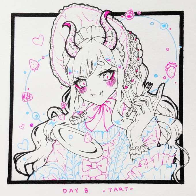 Day 8 -Tart- 🍓Rococo Succubus Berries🍓: A sharp acidic bite followed by a tantalizingly sweet aftertaste. Demons alike love to snack on them. - #inktober #Inktoberday8 #Inktober2019