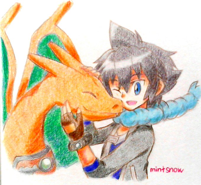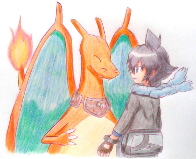 2 13 アラン(助手時代)とヒトカゲ描きました。 #アニポケ #anipoke #アラン #ヒトカゲ #らくがき #色鉛筆 16/03/01 19:14