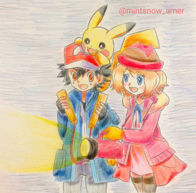 一昨日、火の用心夜回りに行ってきました。 2018年の描き納め。 サトシとセレナ。 来年もよろしくお願いしますm(_ _)m