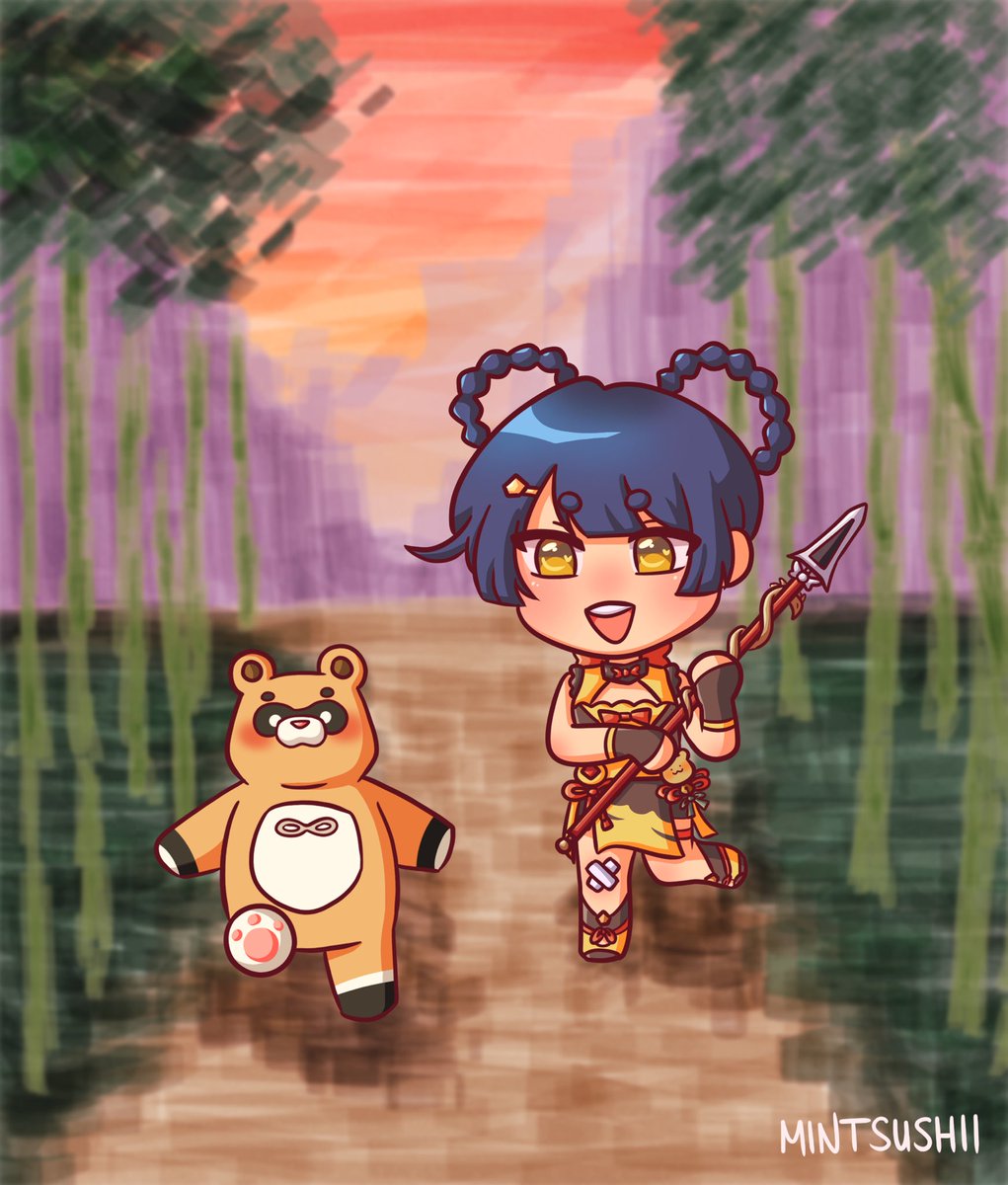 finished piece from today's art stream! wanted to draw the homie kichiboushi to commemorate the "eight locales over mountains and seas" event! #GenshinImpactfanart