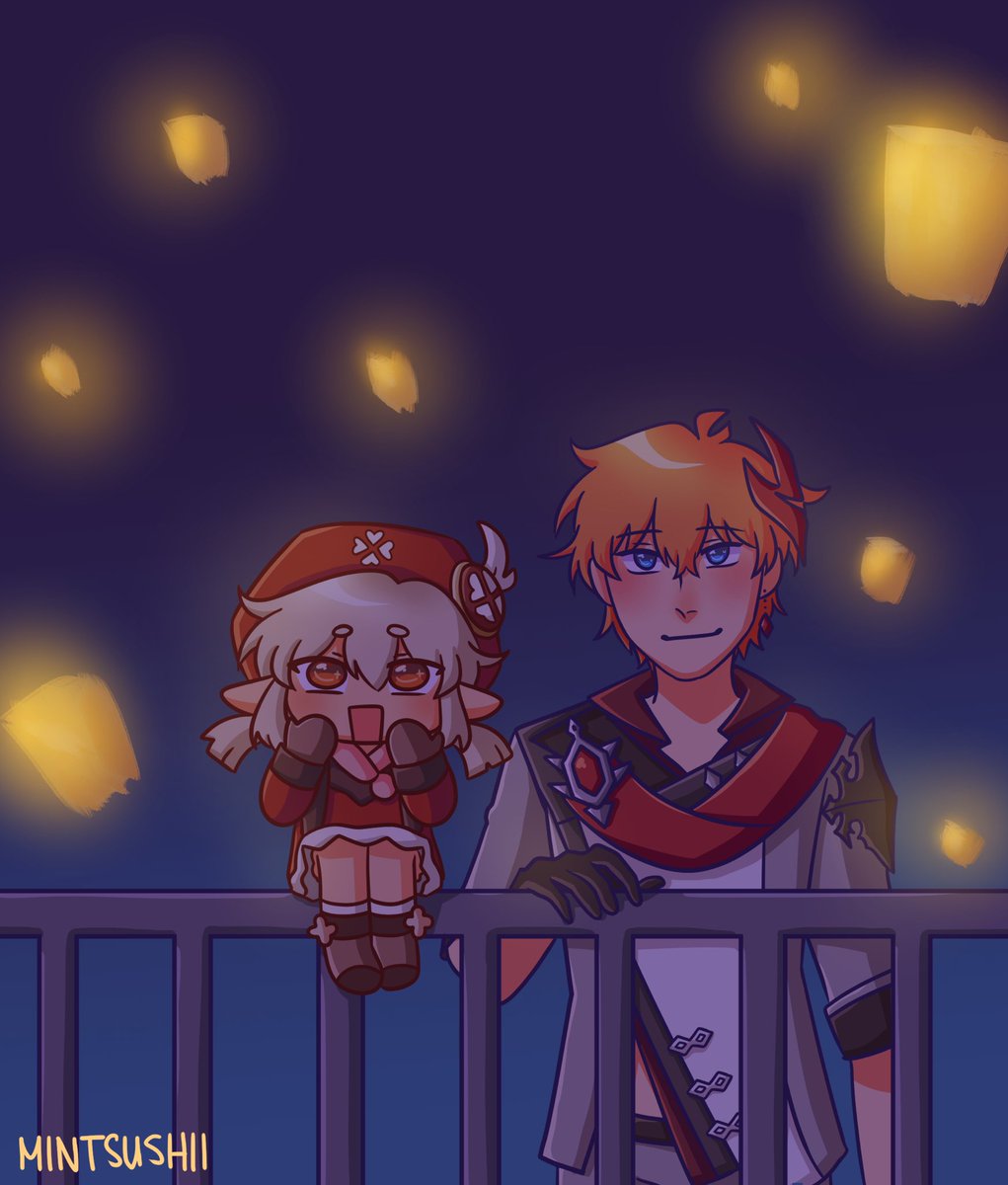 childe and klee at lantern rite! i think they’d be a cute yet chaotic duo . #genshinimpactfanart #klee #childe