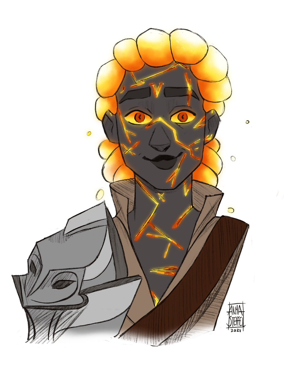 This is Vera, a Magma Genasi Barbarian who’s got got curse problems! This lovely lady is another OC with Adonis in my upcoming Webcomic! 2 down! 4 to go #characterdesign #art #artistsontwitter #oc #DnD #dungeonsanddragons #DnDcharacter #dndart #digitalart
