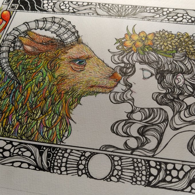 展示会3日目! 額入一点とハガキサイズ三点展示しています。 これはハガキサイズのドローイングの山羊さん。 Gallery IYN 夢色・三原色展~青 ・8月5日~8月15日 ・大阪市北区中崎西4-1-19 #IYN #IYN企画に参加します #ペン画 #色鉛筆画 #絵描き #絵描きさんと繫がりたい #art