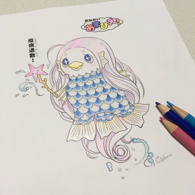 ぬりえ楽しかった♪ 『疫病退散❗️』 #アマビエ twitter.com/ojikaori/statu…