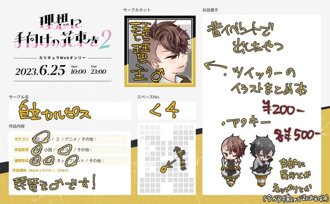 #ギュラwebオンリー2 前出した琵琶主♂ツイッターイラストログ本とアクスタ販売します!支部に短いマンガ展示とネップリ(今から描く)出せれば良いなぁ〜 【く4】まで是非お越しください!発注数間違えたので琵琶アクスタ在庫少なめです〜😂