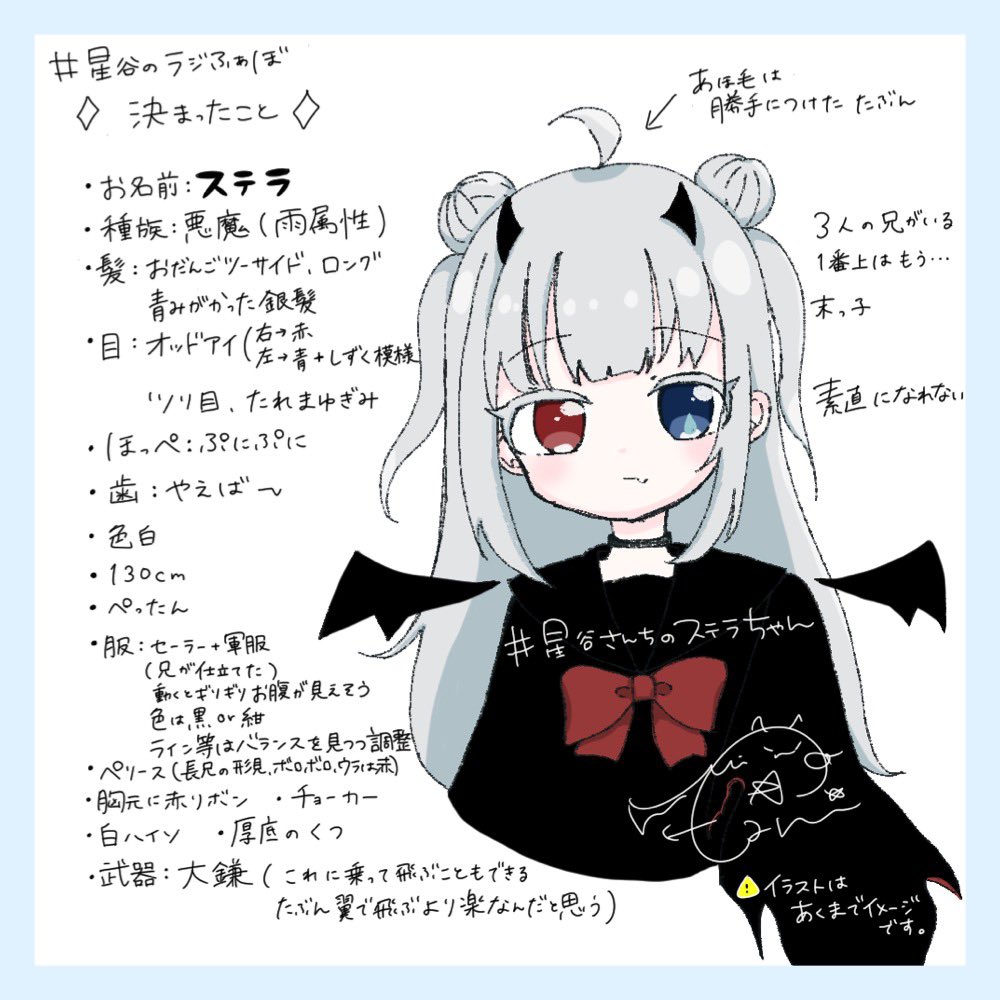 #星谷のラジふぁぼ から生まれたステラちゃん。確定事項なんだっけ?というお声をよくいただくので記憶を辿りました。忘れてることもあります&私の画力じゃ表現できない&制服のデザインは(仮)です。とりあえずこれは確定!というものだけ文字にしてあります参考にしてね✌️ #星谷さんちのステラちゃん