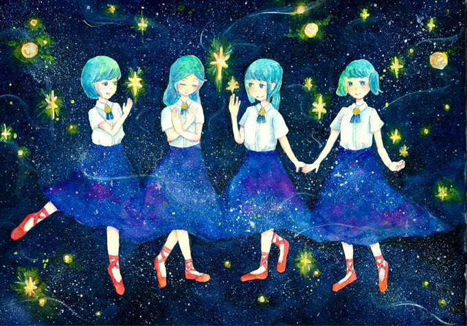 9 43 「恒星たち」 くるくる踊って、煌めくような #イラスト #illustration 21/06/27 22:03