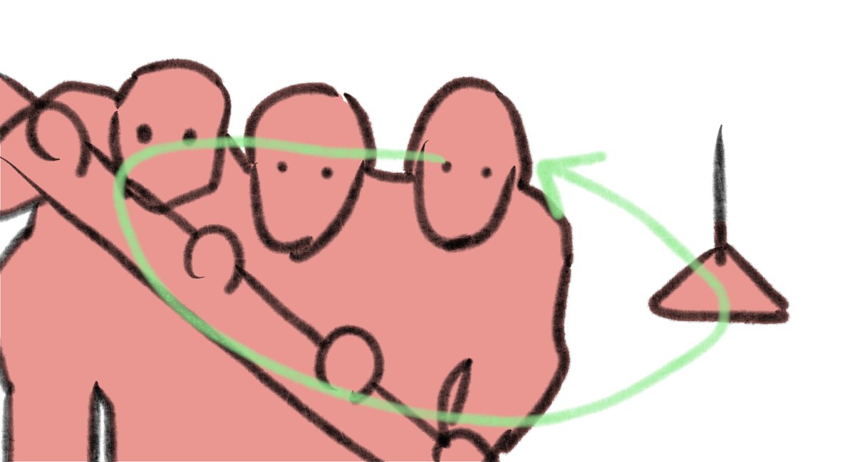 レイアウトと構図の意図を読み取る練習。単純化して分析します。2枚目はラインとシェイプ。3枚目は3分割法。4枚目は視線誘導。これらの分析から自分のイラストに応用して一枚絵をこれから描いていきます〜。3人のおじさんが身を寄せ合ってるの可愛いですね😊ユニークな構図です。