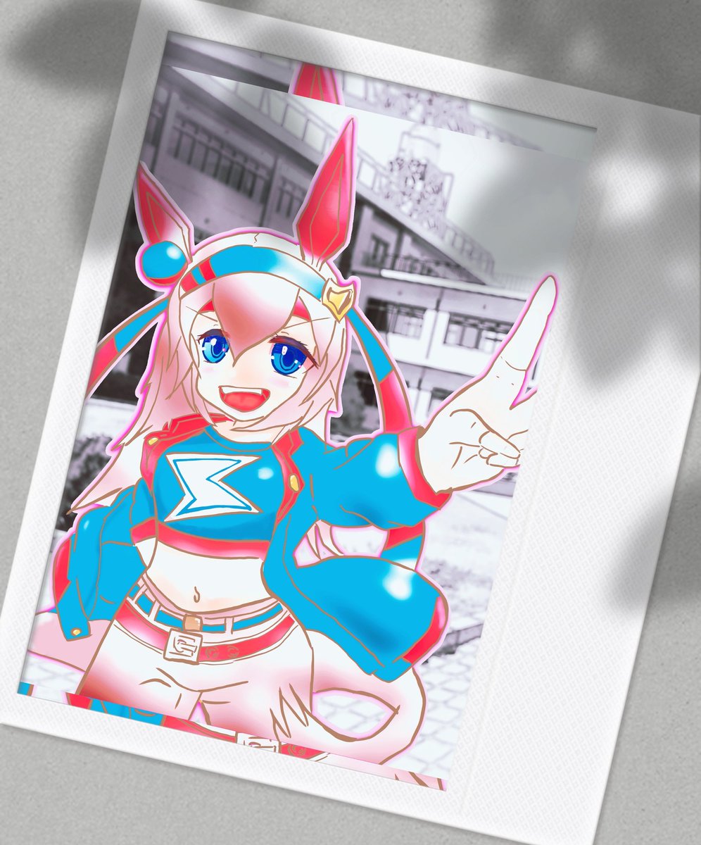 暑いですね😅おねえちゃんとパパで #ウマ娘 の #タマモクロス ちゃん描きました😊 #イラスト
